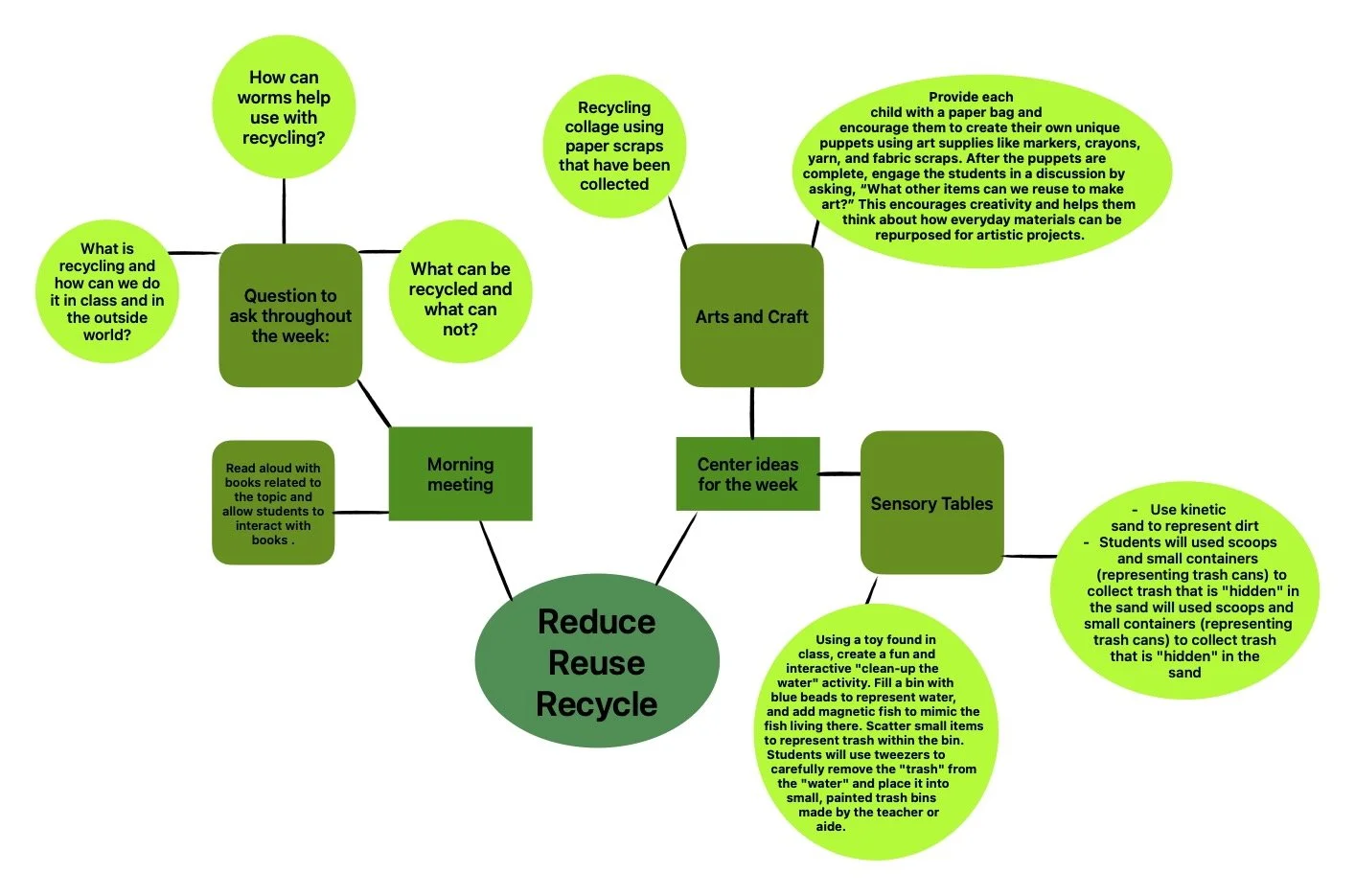 When teaching about recycling to Pre-K students it aligns with early childhood education principles that can emphasize hands-on, social responsibility and experiential learning. Pre-k students learn best through active engagement, repetition, and real-world connections. By incorporating interactive activities such as sorting recyclable materials, storytelling, and sensory-based experiences, I can create a developmentally appropriate learning environment that can foster environmental awareness from an early age.